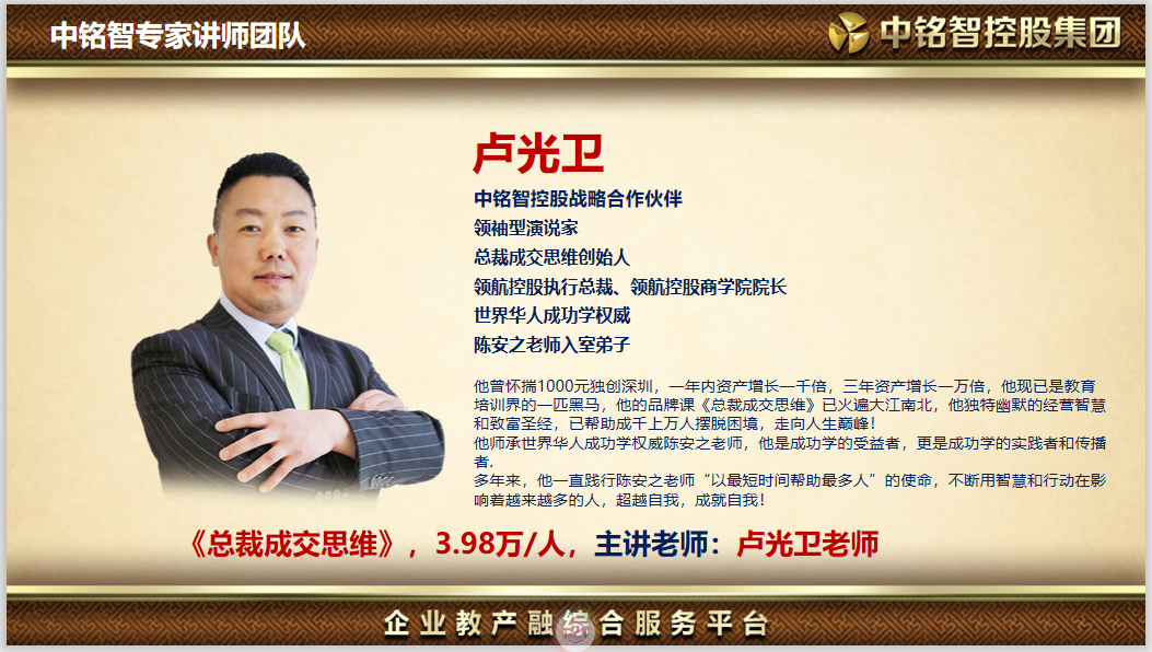 中铭智 中铭智控股集团2006年成立,总部设在深圳,是国内管理咨询培训行业的高端运营平台旗舰企业。 . . .