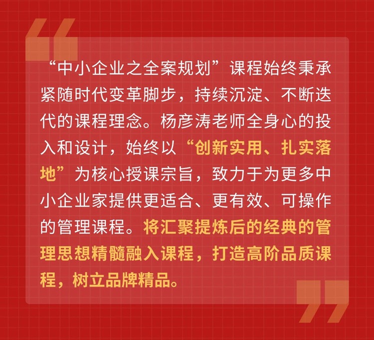★《九大规划》课程是企航管理公司创始人、企航管理董事长杨彦涛先生亲力研发