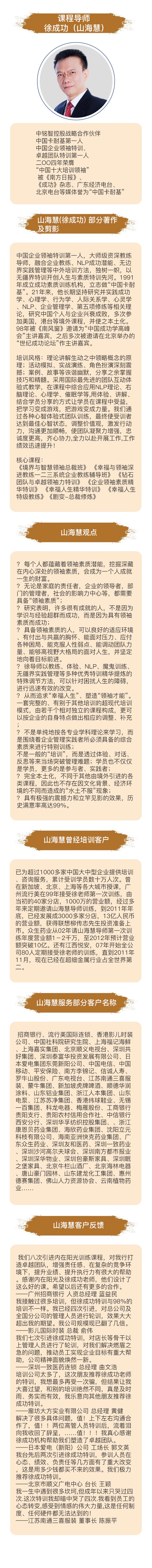解决了很多具体问题,值!上下左右沟通合作了,值!!两位高管人员特训后,流着泪向我收回了辞呈值!!!我真心感谢徐老师帮助我们塑造了一支凝聚力、执行力到位的团队。