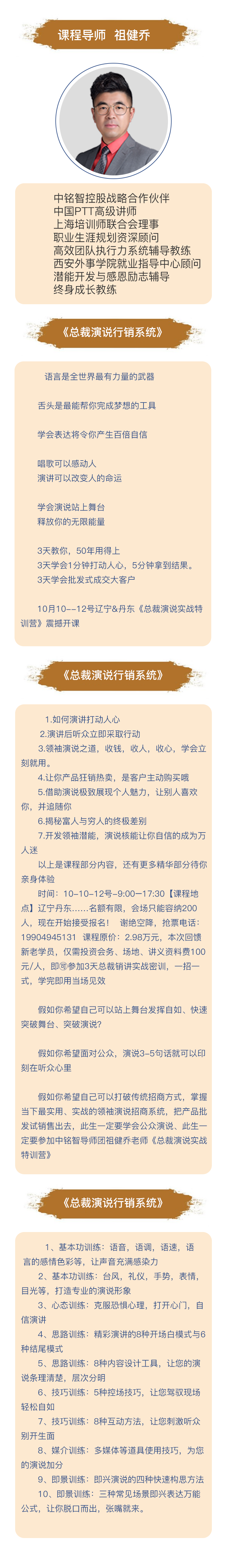 祖健乔老师曾就职于完达山乳业连锁、海尔集团、聚成咨讯集团、燕王机械设备、新之味(法国)食品等生产、销售、服务型(民营、股份、外资)企业,从基层做起,不断成长,经历工厂普工、送货员、销售跟单,高级咨询顾问、客服经理、销售经理 ,先后任培训总监、营销副总、总经理、人力资源中心总监等基层、中高层管理实际岗位职责,是在企业实际经营管理中成长起来的即学即用、实践型培训讲师与辅导教练。